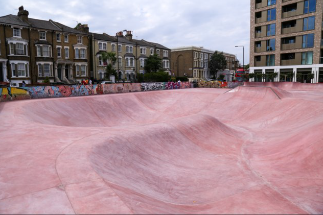 Refurbishment of a skatepark with a new concrete finishing work which incorporates Hatcrete Stanton Red Colourmix.