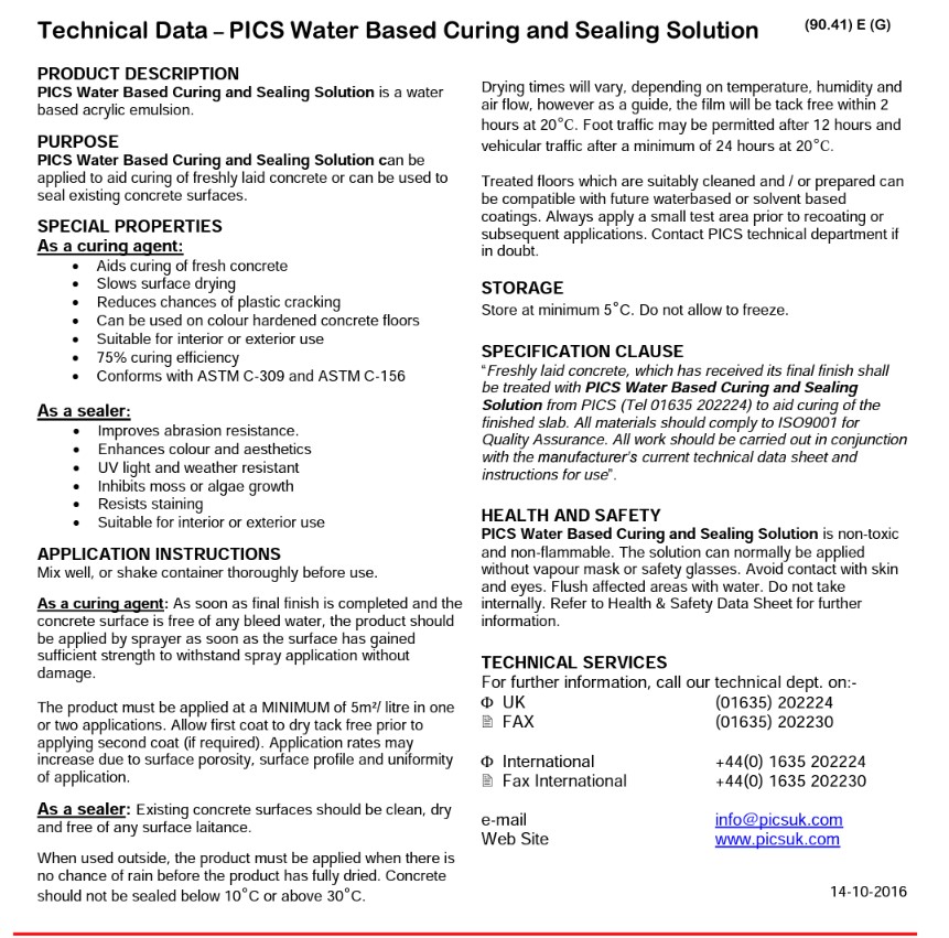 Applied by sprayer when used as a curing membrane, alternatively can be applied by roller or brush to existing concrete as a sealer.
